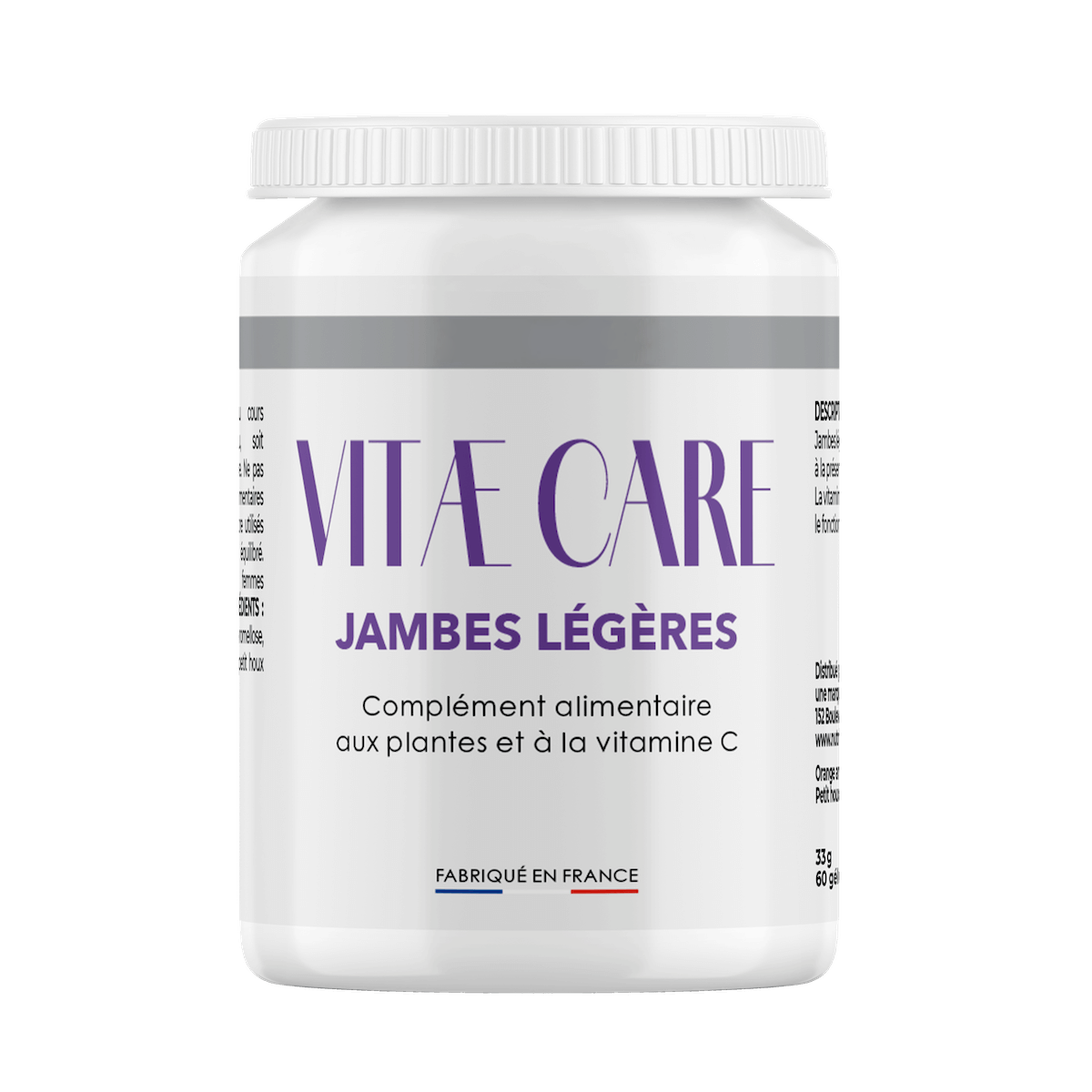 Vitae Care Jambes légères associe orange amère, vitamine C et petit houx qui soutient la circulation veineuse et soulage les jambes lourdes et fatiguées. La vitamine C, quant à elle, contribue à la formation normale du collagène pour assurer le fonctionnement normal des vaisseaux sanguins.